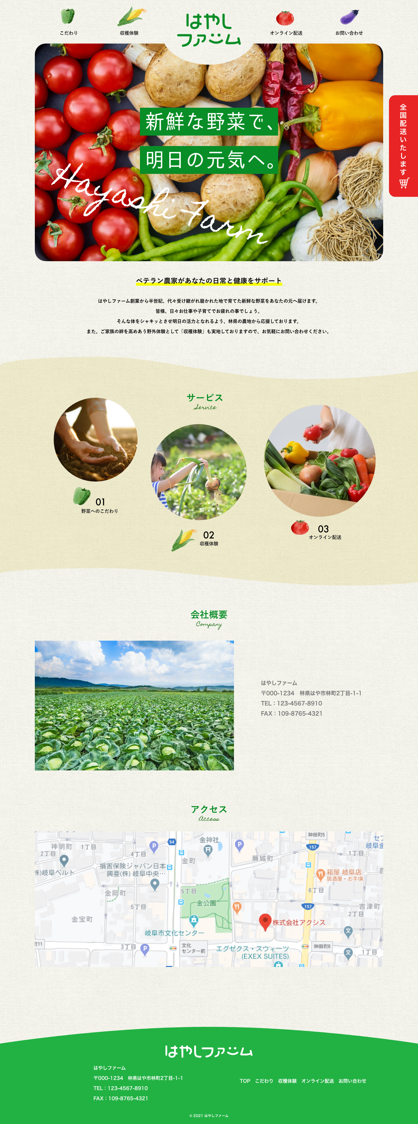 架空の農園のウェブサイトのデザインカンプを作りました。